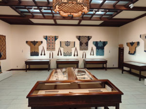 アイヌ初の国会議員となった萱野茂氏が40年にわたって収集した個人コレクションを展示。館長ご夫妻の近年の作品をまじえた新旧の資料群が、所狭しとケースに陳列されていました。奥様が制作されたアイヌ衣装は大変美しくご主人への愛情の深さを感じました。