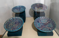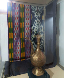 翌朝、国立応用美術館に行きました。19世紀初頭から現代に至るまでの伝統工芸品が収蔵されており、7,000点以上の貴重な作品が展示されています。刺繍(スザニ)の展示室からはじまり、チュベテイカ(ウズベクの伝統的な帽子)、カーペット、陶器や磁器、織物などが展示されており、これからウズベキスタン各地を回るのに大変参考になりました。