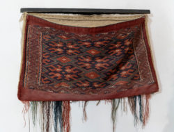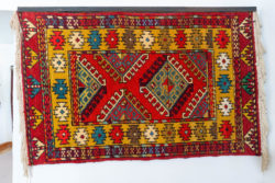 こちらの工房では絹糸を染めることをはじめとして全ての工程をこなしているそうです。絨毯を制作していたのは( )さん。道具を持たせてくれました。なんと重いこと!これで糸に圧を加えて密度を加え織り上げていくのですから大変な作業です。